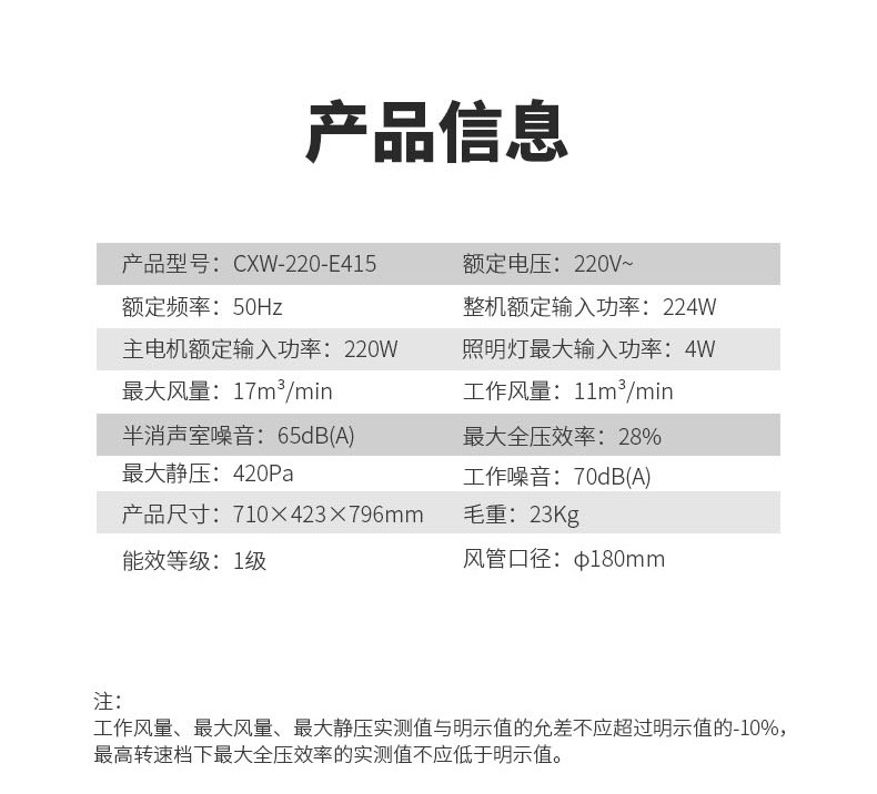 前鋒近吸式吸油煙機(jī)E415