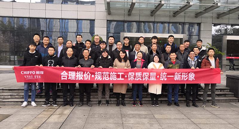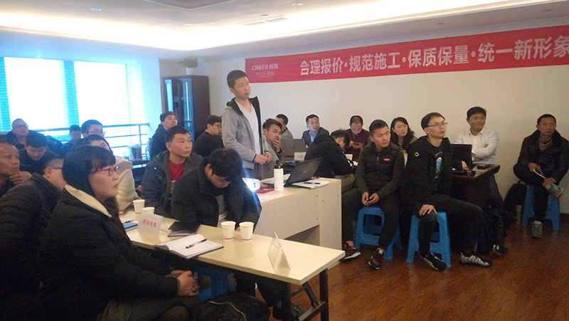 為期兩天的培訓會本著提高“前鋒”品牌店面裝飾裝修工程水平,全民提升施工時效,呈現工程質量,以及“合理報價,規(guī)范施工,保質保量,統一新形象”的主題為參會的二十家公司人員展開統一培訓。